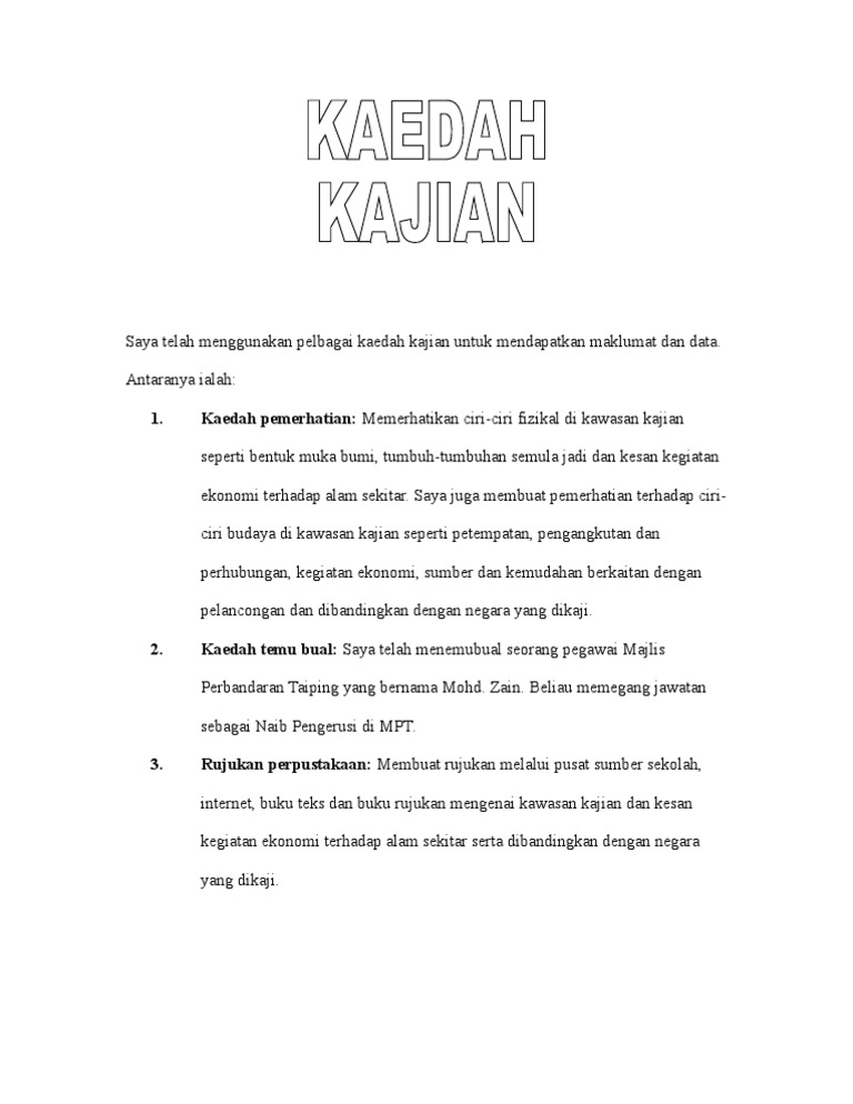 . Objektif Kajian 31 Objektif Am Kajian ini bertujuan untuk meningkatkan minat pelajar tingkatan dua terhadap subjek sains. DUNIA MELALUI DERIA KITA MINGGU OBJEKTIF CADANGAN AKTIVITI HASIL PEMBELAJARAN 1 21 41 81 Memahami organ deria dan fungsinya. Contoh kaedah kajian kesultanan melayu melaka tingkatan 2.